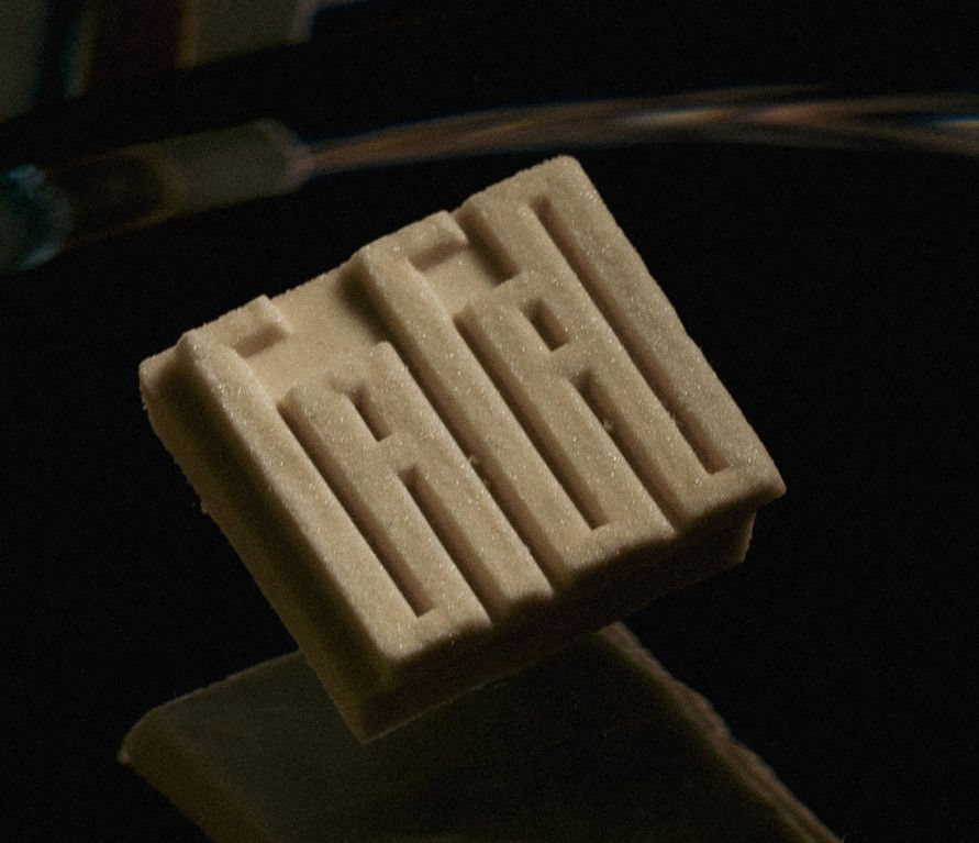 Then, a small piece of wasanbon pressed in the shape of the Cacaogoto mark.